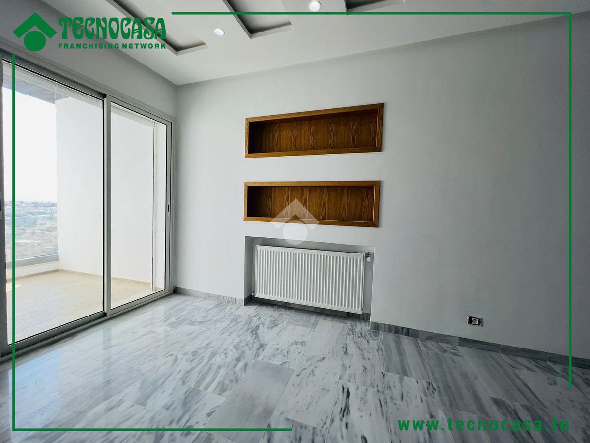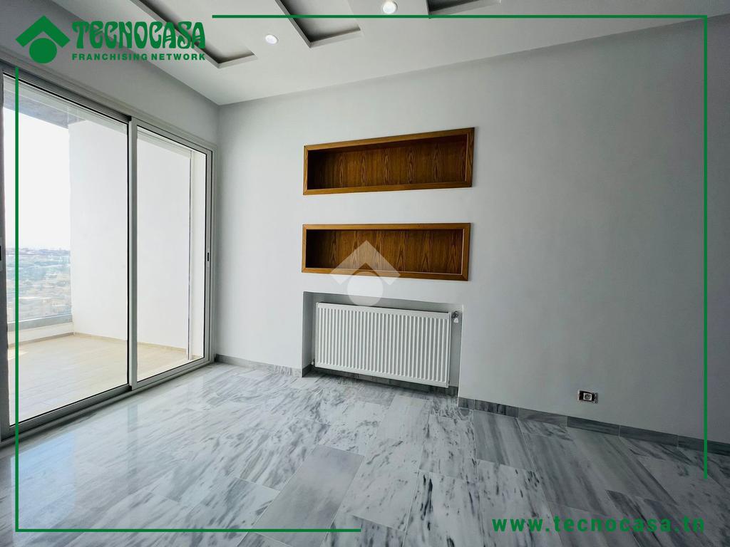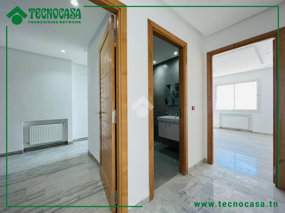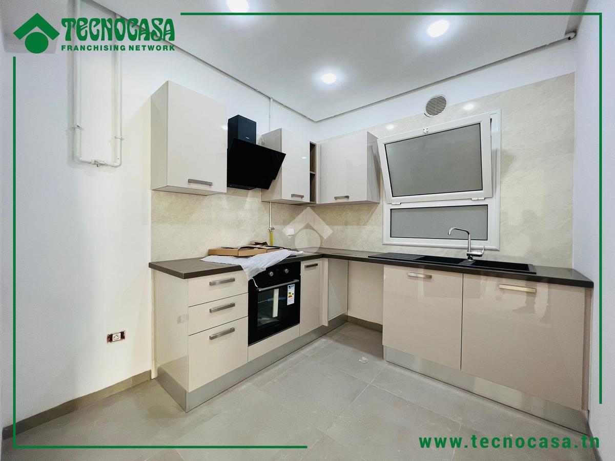 Cet appartement fait partie d'une résidence directe promoteur situé dans un quartier résidentiel et calme à Sahloul 4. La pièce de vie est spacieuse et lumineuse, elle donne accès à un balcon qui la rend plus conviviale. Une cuisine ouverte est aménagée et équipée par une plaque de cuisson, une hotte aspirante et un four encastré. Un couloir nous mène à la partie nuit qui loge deux chambre à coucher dont une est équipée par un dressing et une salle de bain avec cabine de douche. des places de parkings sont disponibles au sous-sol .